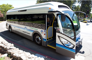 Image: The EcoRide BE35, a 35-foot, low-floor composite body transit bus with battery-electric vehicle architecture (courtesy of Proterra, Inc.)