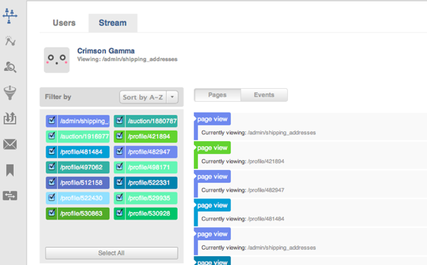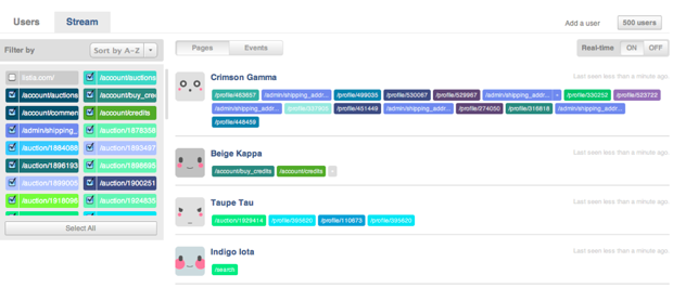 Now Mixpanel, the real-time analytics startup that just raised $1.25 million from Sequoia and top angels, has a solution. Today it’s launching a new feature called Streams that will let you visualize exactly how people are navigating through a site in real-time. Pick a user, and you can see a history of which pages they’ve visited, and where they went next.