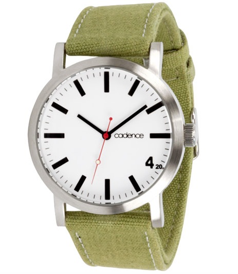 This watch celebrates 4:20 which is hippy code for smoking “grass” or, as the kids call it, “reeftoke.” If you see your kids wearing this watch or using a mobile phone or watching The Daily Show, you can be almost certain they are polluting their bodies with killer drugs. The watch has a Japanese (BUY AMERICAN, MORAN!) watch movement and green cotton strap (BUY LEATHER, MORAN!). It costs $85 and is available today. I’d recommend sending Cadence a sternly-worded letter because I, like you, don’t do drugs and prefer to finish a case of good old American Miller High Life of an evening to any Spanish fly or whatever these kids are tooting.