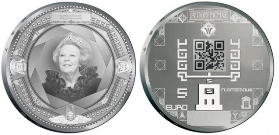 These coins from the Royal Dutch Mint are legal tender and connect you to this site when scanned. It’s going to be hilarious when future archeologists find these and figure that they’re some sort of prayer or an image of a great space god we once worshiped.