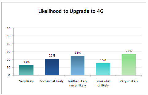 All in all, these are somewhat surprising stats for 4G advocates. It seems that two-in-three consumers are not willing to upgrade their contracts for 4G, with 60 percent of consumers unwilling to pay more to upgrade — period. One-third of those consumers do not even perceive 4G as necessary.