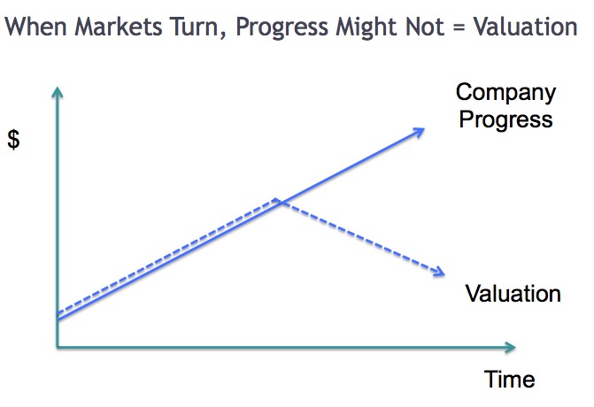 So I’m not advocating panic or a need to rush your funding round. I just think that some entrepreneurs try to “optimize” too much for short-term prices. They hope to delay fund raising (or only raise small amounts now) so that they can raise at a much bigger price later. That may happen.