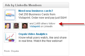 Another format could feature a display ad for a company, and LinkedIn will show how many of the network’s users have followed or recommended the company and/or its products.