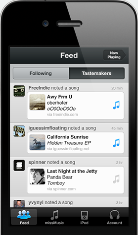 exfm’s iOS apps take all the functionality of its extension, like access to your noted tracks, a feed of songs from people you follow, and adds a few cool new features like a “Tastemakers” section, which automatically pulls in songs from music blogs like Spinner, MTV Hive, I Guess I’m Floating, and more.