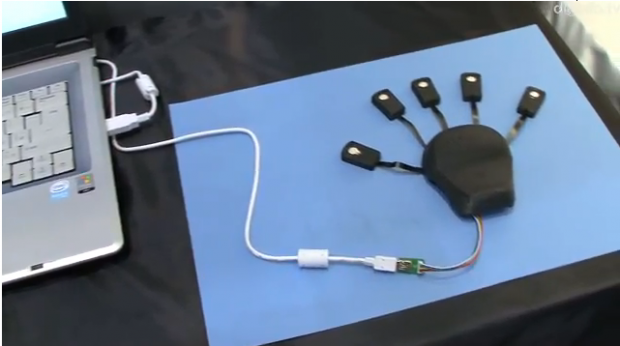 This looks like something straight out of “Minority Report”: Japan-based robot venture Double Research & Development Co. [JP] has developed a 5-finger mouse [JP] that can track the movements and pressure of individual fingers and send the information to a computer to trigger actions.