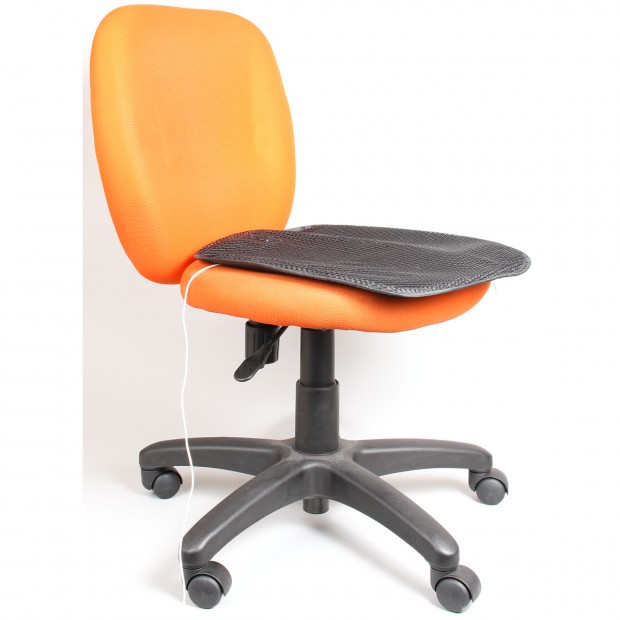 The new version is “more compact” (395×500×30mm) but still works the same way: just plug it into your computer’s USB port, sit on it, and let it cool your behind through the built-in fan.