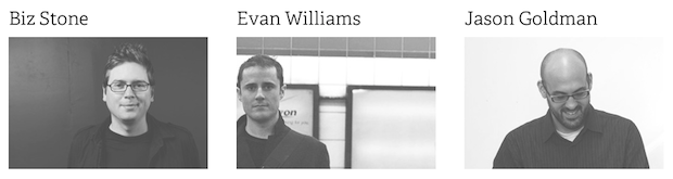 Twitter co-founder Biz Stone took some time to blog today a bit about his past. He goes back to Xanga, then Blogger/Google, then (though not directly mentioned) Odeo. He talks about how after they failed to sell Odeo, Evan Williams created Obvious, a parent company with the purpose of buying back Odeo from its investors. Around this time, Jason Goldman, another previous Blogger/Google guy, joined them. Among the assets of Odeo was a little side project created during a hackathon, called Twitter. The rest really is history.