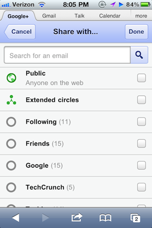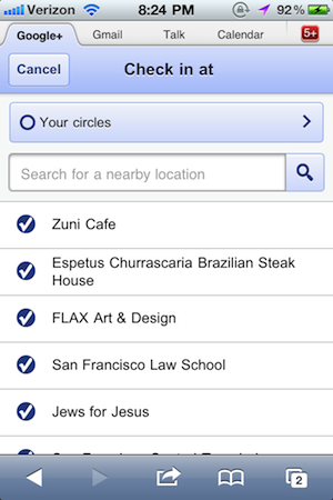 And there are actually some other unique features, such as the ability to check-in to a venue and see Google+ message from users nearby to your current location.