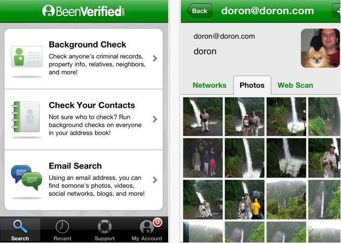 Background checks are now fully mobile, thanks BeenVerified‘s new app for Android and the re-release of the app on iOS. The Background Check App does exactly as you might expect: It pulls data from BeenVerified’s site and allows you to check up on the people you know through name queries or email addresses. Users can check up on their contacts with one click, allowing you to see how many times the person in the cubicle next to you has been arrested. Luckily, I have a spotless record, or else I wouldn’t be writing this. Right, BeenVerified?
