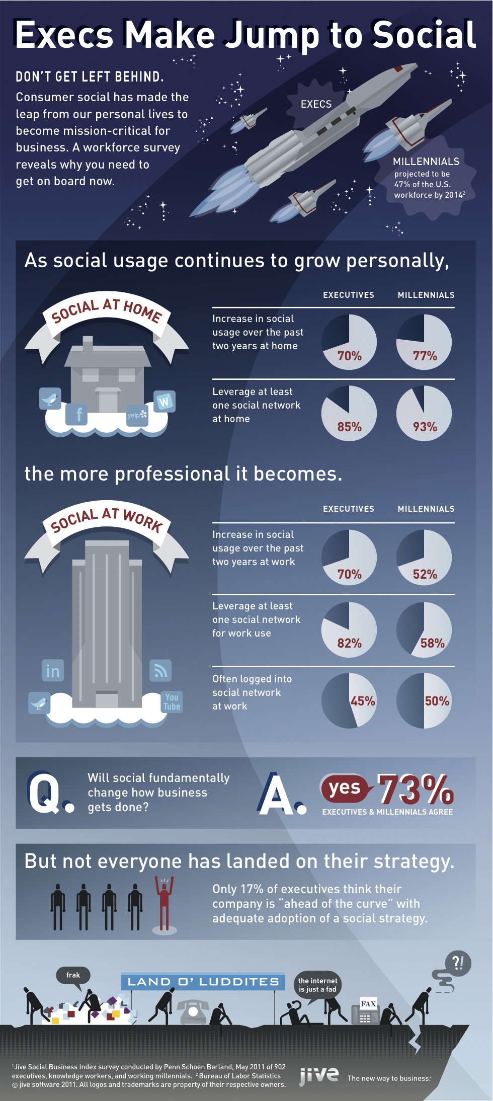- Sixty-‐six percent of executives believe that social applications for business represent a fundamental shift in how work will get done.