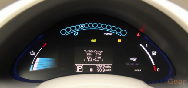 Charging the Leaf is rather simple. It ships with a 25-foot 110/120V charging cable, but owners should invest in the 220/240 station that charges the Leaf in one third the time. Charging a completely dead battery takes 22 hours on the 110 but only 7h30 on the 220v. I had issues charging the Leaf but it was totally my garage’s fault. The Leaf requires grounded outlets which apparently mine are not. It’s something worth considering before you buy, or else like me you might have a cable draping out of your kitchen window for a week.