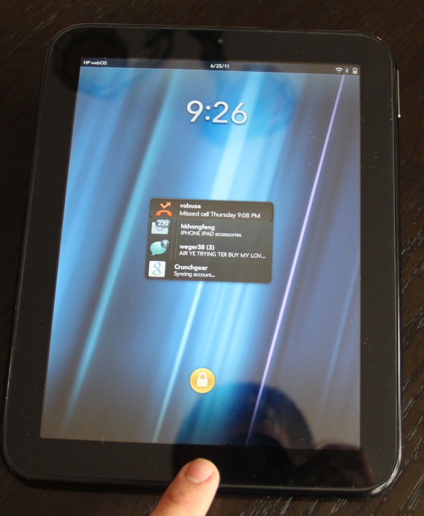 The TouchPad has the same screen pixel density as the iPad 2 but makes more of all of that real estate thanks to the clever WebOS interface.