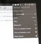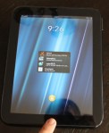 In all, the TouchPad is about the same size as almost any other major name tablet except the iPad 2. It is as thick as the Xoom and the original iPad but the bulbous shape makes it feel a bit bigger. It isn’t very heavy – 1.6 pounds compared to 1.3 pounds for the iPad 2 and 1.6 for the Xoom – but it “feels” heavier and heftier. I would worry that a case, which it sorely needs out of the box, would make it even heavier, although I did actually see a TouchPad with a Smart Cover-esque folding case that looked quite promising.