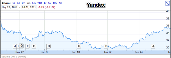 Yandex has experienced highs and lows in the past month with the value of its stock, but the fluctuations have not been nearly as extreme as some of its contemporaries in the tech IPO market. Yandex’s stock dipped to a low of $29.73 in mid-June but rebounded quickly and closed on Friday at $35.69, which is a 40 percent increase from its initial pricing.