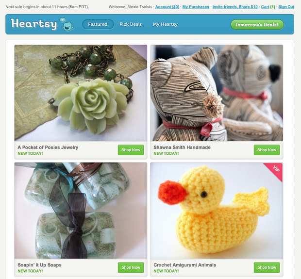 Heartsy.me has been around in incognito mode since February 2011 and has gotten considerable media pick up as a “Groupon for Etsy” mainly because of its novel twist on the concept of a social deals platform, letting users vote on what deals they want to see. Even we covered it, without knowing anything about the team behind it.