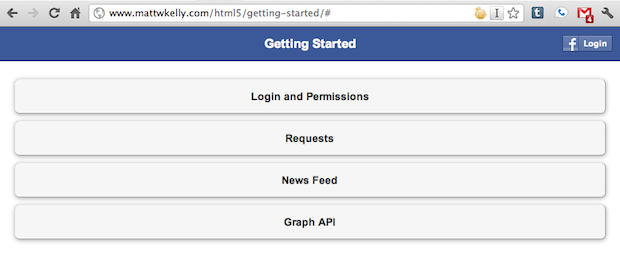 For a better idea of how this may work, check out this “Getting Started” site set up by Matt Kelly, a Facebook engineer who works with developers. Undoubtedly, this site will be pulled, but it essentially shows how HTML-based navigation is set up on a third-party site. It looks good, and is fast. And it contains talk about things such as to use remote calls to send action alerts inside of a mobile web app — “This can be used for re-engagement, like telling a friend it’s their turn in a board game.”