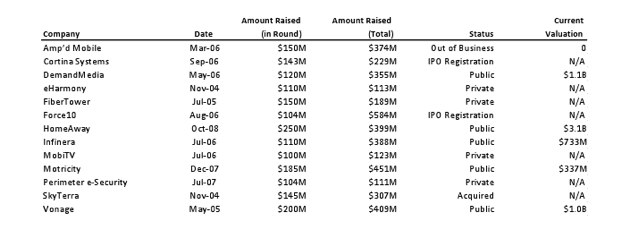 While many of these companies have had good outcomes (IVP invested in HomeAway, Cortina, and Vonage), it’s surprising how few lasting, quality multi-billion dollar companies are on this list. Having a successful mega-fundraising is a lot like being an NBA lottery draft pick. It can feel great at the time, but just like for Darko Milicic, Michael Olowokandi, or Sam Bowie (drafted ahead of Michael Jordan), it doesn’t guarantee success.