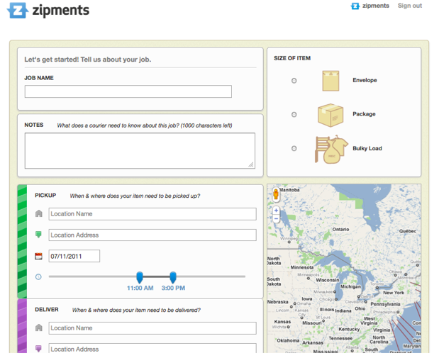 Now there’s a startup called Zipments that’s offering a similar service with a slightly different twist: they’re focusing exclusively on courier jobs (or, as they call them, logistics). Need something delivered in a jiffy? Fire up Zipments, set a price, and someone will (hopefully) be ready to deliver it within the hour.