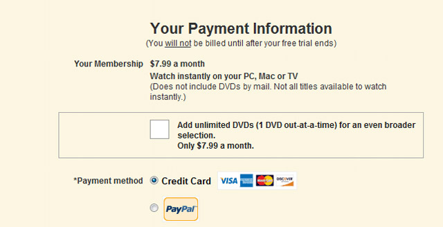 While Netflix might state DVD rental is separate, it’s not treating it as such. New customers are simply asked if they want to add the $7.99 a month service when signing up; the streaming service is selected by default.
