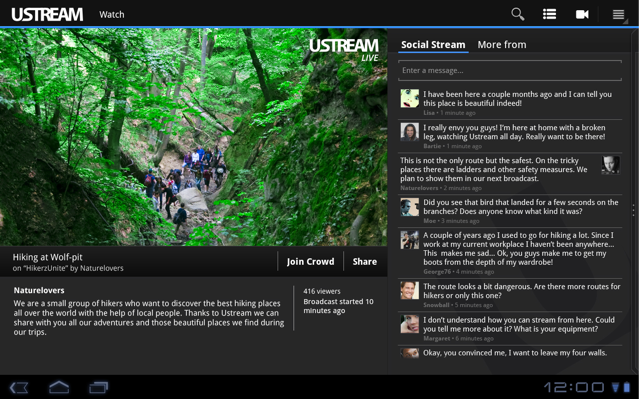 Well today, Honeycomb is getting a very nice addition its app catalog, complements of Ustream. The popular video service, which lets users stream their content live to the web, for free, has just launched a version of its Android app. It’s available right here.