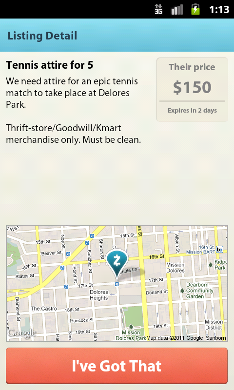 Occupying a similar space as TaskRabbit and Gigwalk, the web and mobile service seeks to connect buyers and sellers in a localized market place, reverse Craigslist-style, by allowing users to post what they’re looking for (beer, a massage, or an iPad), how much they’re willing to pay for said good or service, and how soon they need it. The startup then posts the request in the local community forum and allows users to share the request via Twitter and Facebook.