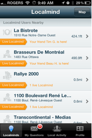 Users signup using their Foursquare, Gowalla, or Facebook Places account. Every time they check in with their location-based service on Localmind, they can be sent a question about that location. The startup’s iOS, Android and web app will show you who has checkin to a given location using LocalMind, and you can send questions about a venue to users.