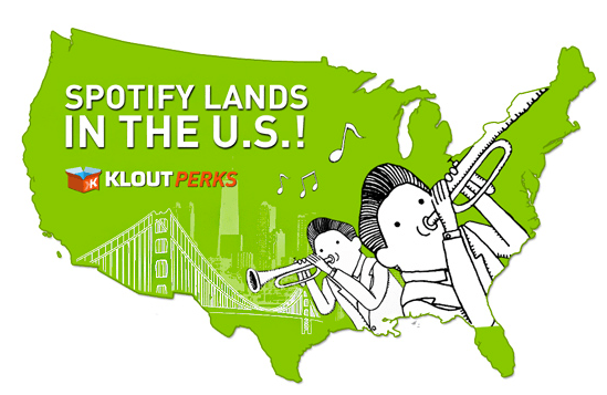 Music service Spotify has finally arrived in the U.S. In case you haven’t heard, Spotify has made its free version invite-only, but you can access the music service now if you shell out $4.99 or $9.99 per month. If you don’t want to pay for Spotify, and don’t have an invite in your inbox, don’t worry. There’s always Klout Perks.