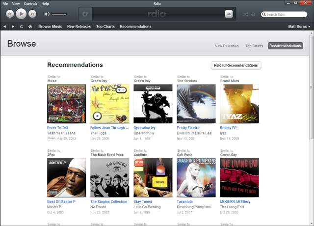 That’s not the case with Rdio, whose desktop app is really just a portal to its web service. Nearly everything is the same, including the navigation paths and user interface. Rdio’s app lacks any local media playback functions, which may be just fine for some users. The desktop app does play friendly with keyboard media functions (like the pause/play key you may have) where Rdio’s web service does not.