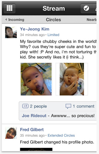 While the Google+ Android app was ready to go on day one, the Google+ iPhone app had remained in review with Apple. Until now, iPhone users have had to access a mobile web version of Google+ in Safari, which wasn’t nearly as feature-filled as the Android app.