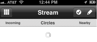 The iPhone app is designed to let you see your Google+ stream, photos, Circles, and Huddle with other G+ mobile friends and followers. The stream still seem a little bit slow to load, but that may be because I have a pretty full stream already. You can swipe between your Circles, Incoming (posts from people who follow you but you don’t yet follow), and Nearby. You can geotag posts, which is great. A big feature that is missing is that you can’t share posts in your stream. Soni says that is coming for both Android and iPhone. All you can do right now from mobile is comment on posts or +1 a post.