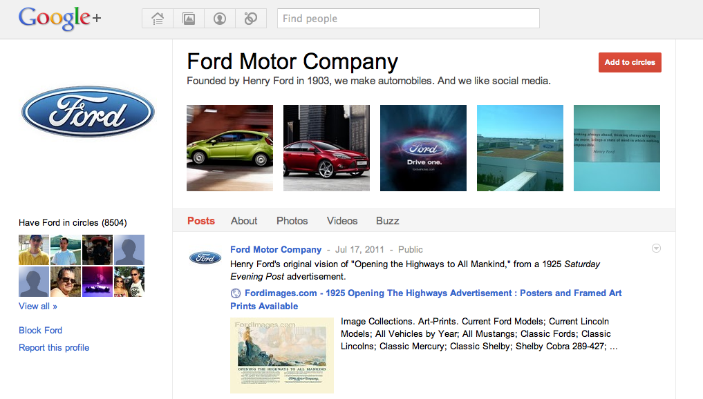 We were explicitly told not to put up a Google+ Profile for TechCrunch at launch, but other brands like Mashable, Search Engine Land, Ford and Seasame Street didn’t get the memo and had their profile pages suspended this morning. Since then Ford and Mashable have had their Google+ pages reinstated after what I’m assuming was communication directly with Google. Danny Sullivan in contrast will have to file a reconsideration request for Search Engine Land’s page.