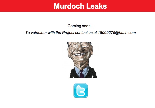 As of right now, the site is blank, with only a “Murdoch Leaks” heading, accompanied by the following text: “Coming soon … To volunteer with the Project contact us at 18009275@hush.com”. And, of course, a link to a Twitter account, inscribed with: “Launching soon… Making Rupert Murdoch, News Corp and News International accountable.”