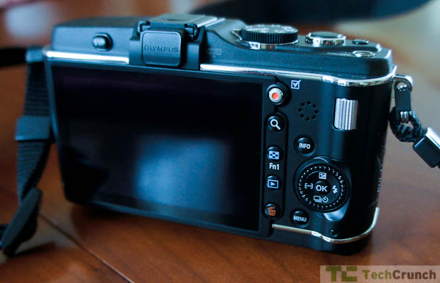 The E-P3, then, is the granddaddy of Olympus’ M4/3 line. The MSRP of $899 gets you the camera and a M. Zuiko Digital ED 14-42mm II R f3.5/5.6 Zoom lens (or a 17mm prime lens, but that’s may be a little less useful for beginning shooters) and the camera comes in silver, black, and white. It weighs 13 ounces and is five inches wide. It has a 3-inch touchscreen that allows you to instantly focus on any part of the image with a single tap. A mode wheel on the top offers various shooting modes while a separate Function button allows for quick access to the camera’s various settings. There is a dedicated video button on the back of the camera and the on/off switch is carefully recessed, unlike the buttons on previous Olympus M4/3 cameras.