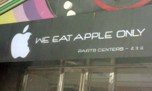 Apple’s success and popularity in retail is its curse in China and it’s clear that Apple is paying for its failure to grab that continent early (although clearly they’re making up for lost time). Outright piracy in terms of sales dress, design, and trademark infringement aren’t half of the problem, I suspect. In fact, I support and after-sales activity are the biggest issues at these stores but, as anyone knows, if you’re dedicated to a brand you’ll do anything to grab the latest gear. While you can pop into an Apple Store in Beijing and Shanghai, it’s probably considerably harder to find one in Kunming, unless someone rigs one up with some wooden furniture and kliegs.