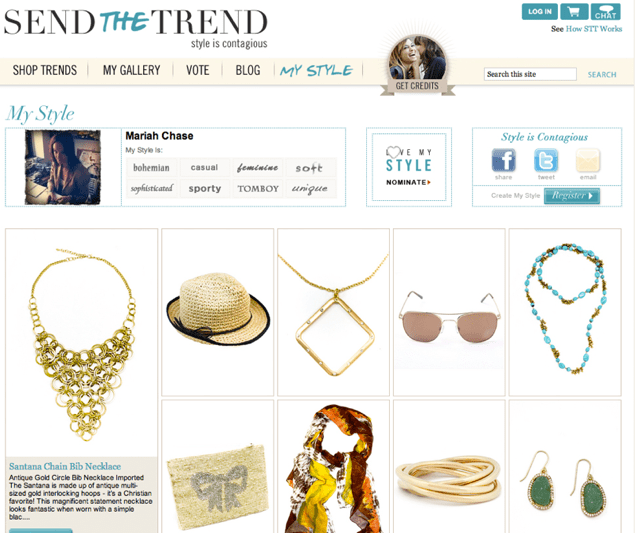 You can then socialize your MyStyle page and share it via Facebook, Twitter and email. Every time a friend buys a product, you get an automatic $10 credit at Send the Trend that you can use toward buying accessories. The top stylists can win more prizes, including $500 in cash.