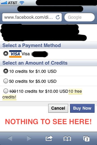 That’s why it’s surprising to see Bloomberg report today that “Facebook May Bring Credits to Mobile Browsers“. Um, of course they will. Not only did we report it last month, in a follow-up story, I included a screenshot of the implementation. I’ve seen it with my own eyes. It’s real. No anonymous sources needed.