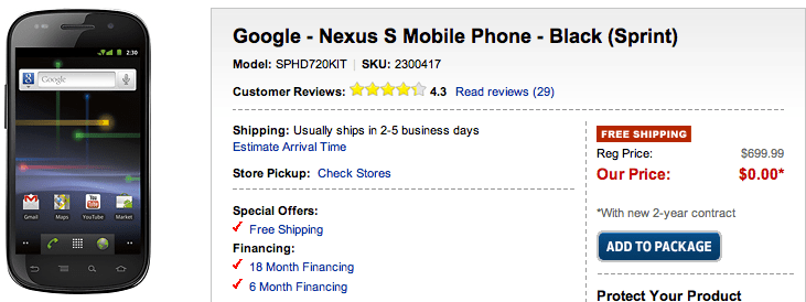 Less than two weeks ago, Sprint cut the price of its Google Nexus S 4G by half to just $99 on-contract. That had me pink in the cheek with barely controlled glee, so you can only imagine my reaction when I saw that both Best Buy and Amazon were offering the device for free (and nearly free).