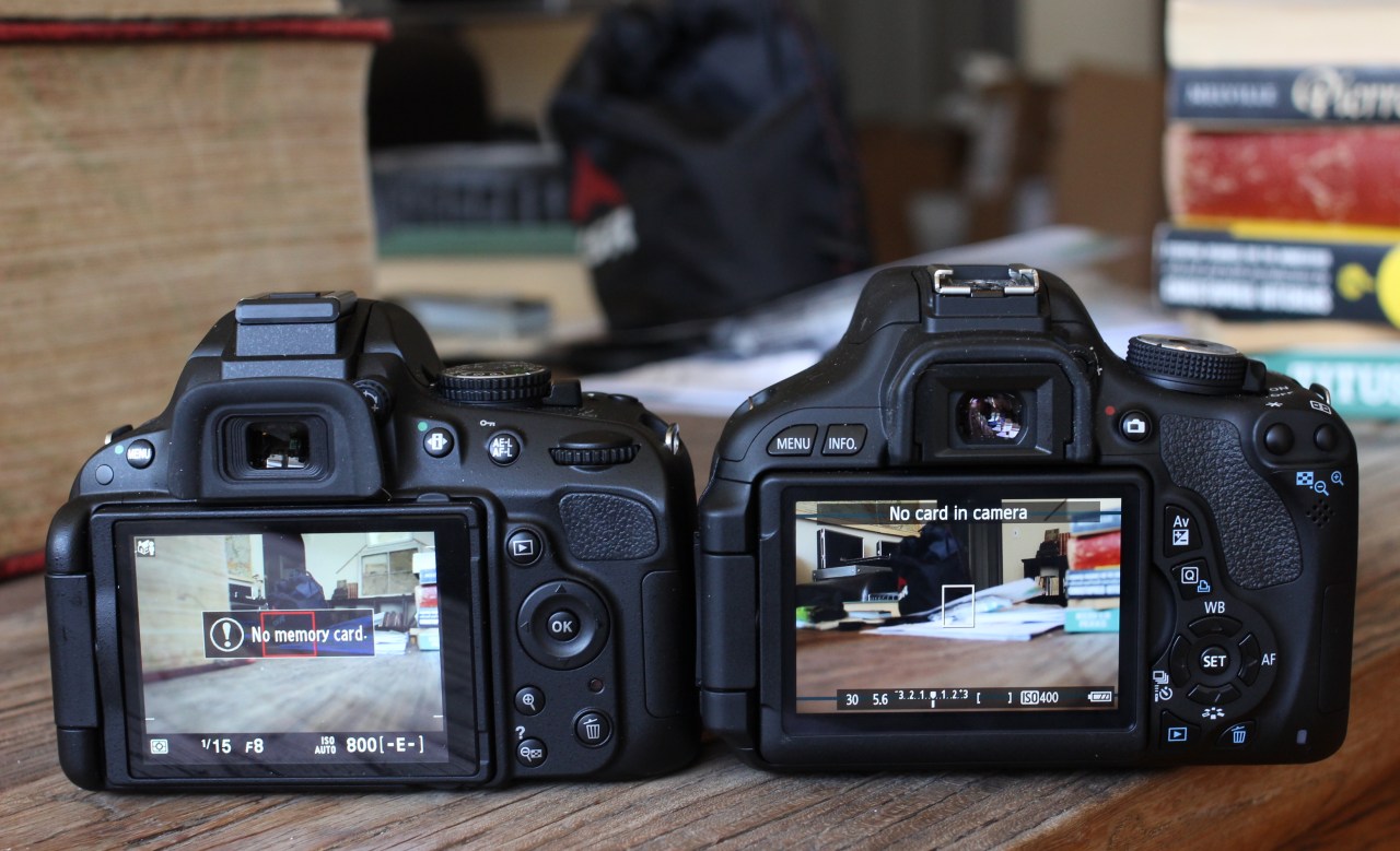 Yet one of these must be the better camera, or at least certain types of shooters might reasonably prefer one or the other. I’m going to look at a few of the major differentiating points that you wouldn’t really think about unless you had the camera in your hands. Note that these points are not necessarily new with these cameras! The primary change in these two models is the addition of an articulating LCD. Otherwise they’re very similar to their predecessors. But since these are the newest models and are likely to make the prospective DSLR-buyer lose some sleep (as they are both excellent values), a straight comparison seems in order. This is a practical comparison focusing on things consumer commonly care about.