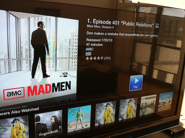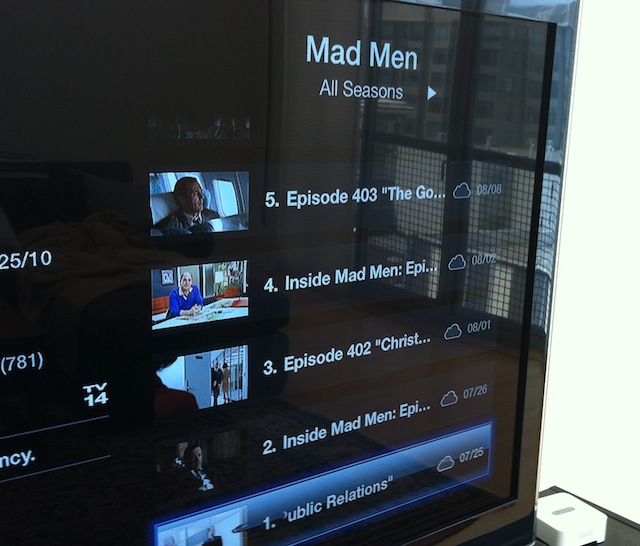This is a big departure. Previously, you could only rent TV shows on the device. This was a bit odd since Apple has much more TV content available to buy. But in order to get it, you had to buy it on your computer (or iPhone/iPad/iPod touch) and then stream it to the Apple TV. That’s no longer the case. The update to Apple TV today brings the ability to purchase any TV content available on iTunes. And you can also easily access content you’ve previously purchased via the cloud — though it looks like the shows are still in the process of rolling out, as John Gruber points out.
