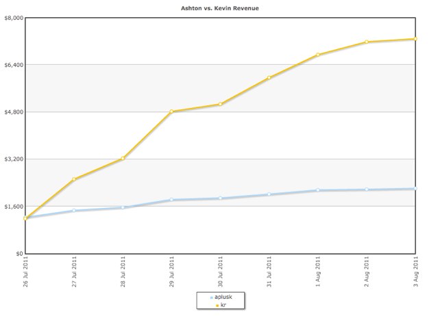 Both Kutcher and Rose recently tweeted out a link that gave their followers $10 off any purchase at Fab.com. Fab wrote a blog post about the marketing test. Kutcher’s link resulted in 5,888 signups, more than Rose’s 4,356 (but not much more). But Rose’s links resulted in more orders and higher revenues.