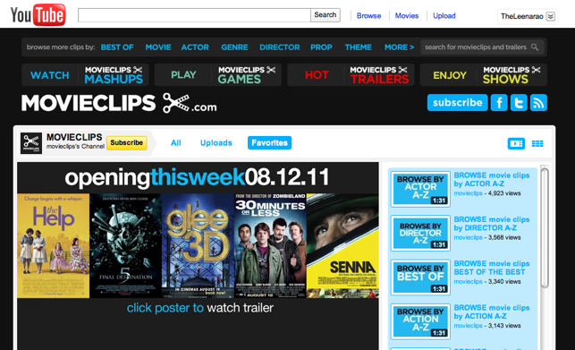 So now, Movieclips will have a number of dedicated channels (found here) on YouTube, with breakdowns of clips by actors, movie types, genre, director and more. Clips will be able to be viewed anywhere YouTube is viewed. The company will also be adding interactive games, trivia challenges, clip mashups, trailers and clickable video formats. The clips will also be featured in the Movie Extras on the YouTube video on demand platform.