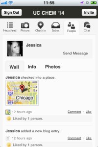 The app, which is like a white-labelled Beluga or GroupMe, lets members post status updates, chat, share photos, check in to venues, see who’s nearby and more. Members can also login using their Facebook account for easy access.