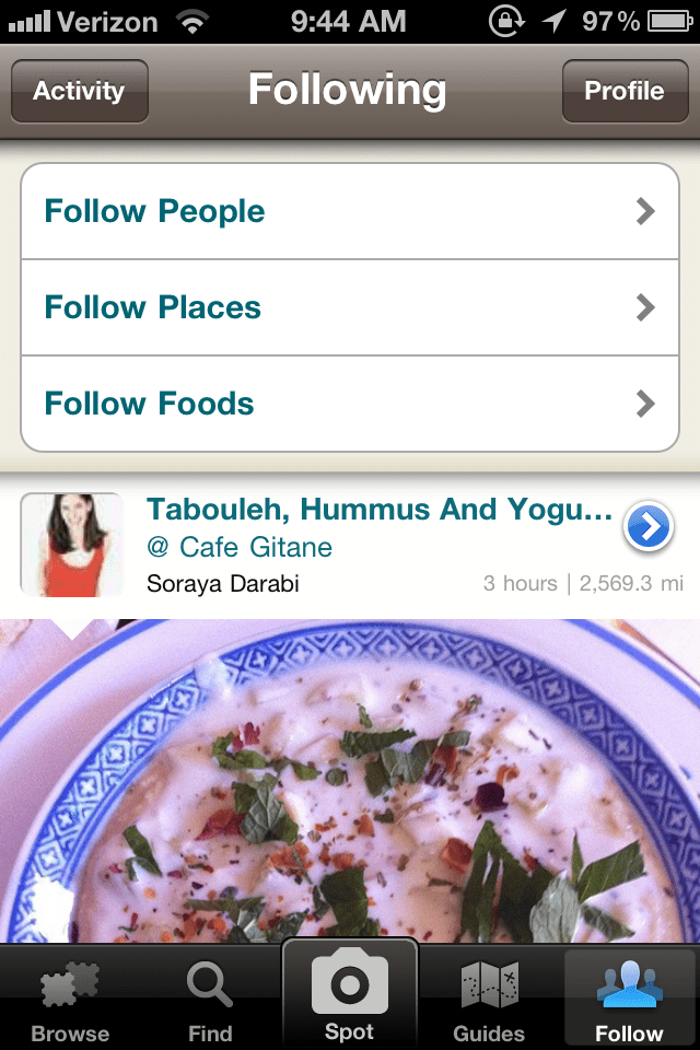 Of course, Foodspotting has a different take on the update. “People don’t trust apps, people trust people. Our goal was never to create another social network or photo sharing app. Instead, we’ve designed Foodspotting’s social elements to support the food-finding experience,” Andrzejewski says. “When you visit a new city or walk into a restaurant, you can see what a friend — or the Travel Channel — recommended there. With a growing user base and these social features, our vision of a lens-like app that reveals interesting things around you is becoming more and more real each day,” she continues.