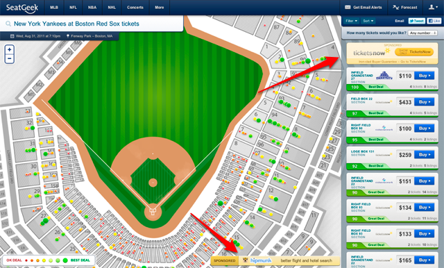SeatGeek’s new sponsored placements are essentially highly targeted ads, with pricing that varies depending on how deeply the promotion is worked into the site. Different ads are shown to people depending on which events they’re viewing, and where they’re browsing from.