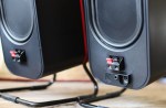 On the right speaker you have a red/green power indicator LED, a 3.5mm headphone jack, and the volume knob, which you press to power the speakers on or off. The indicator is tastefully dim and of an olive hue, not the traffic light green often found on devices. I was not impressed with the quality of the volume knob: there’s very little weight to it, and lots of wiggle. And the volume level notch is so shallow as to be nearly imperceptible most of the time.