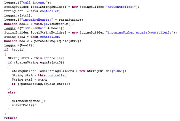 It’s important to note that the “auto-answering” feature of the malware can only affect phones running Android versions 2.2 and below, as the MODIFY_PHONE_STATE permission was disabled in Android 2.3. This, again, is another very good example as to why manufacturers and carriers should not hold back Android OS updates from being pushed down to consumers’ devices.