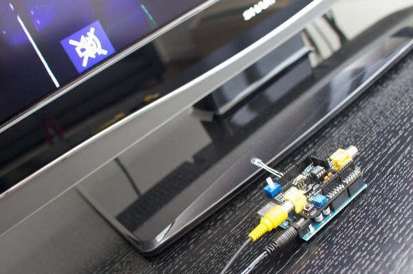The project uses the Video Experimenter Shield, Lady Ada’s IR tutorial, and some basic code to scan the captions for keywords.