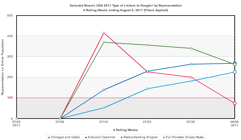 A few days ago, traffic analysis firm Experian Hitwise shared the results of a study of over 10 million online users, and concluded from its findings that Google’s new social network, Google+, was headed into mainstream territory.