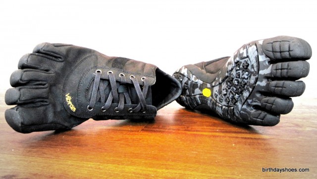 As Vibram FiveFingers go, the Bormio is surprisingly not as eye-catching as it appears at first blush — this assumes you’re wearing them with jeans or pants. Obviously, the ankle-height design makes them look very unusual when they’re sitting “empty” on the floor (like leathery or frostbitten feet chopped off at the ankles), but as Mrs. BirthdayShoes put it, when they’re on, the Bormios just look like any other pair of Vibrams.