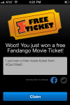 Of course, because movie trailers are basically the first point of conversion to theatre ticket sales, you can buy movie tickets from within the app — Can’t Wait monetizes by taking an affiliate fee from Fandango. In addition, people who click Can’t Wait and share a trailer with friends (essentially bringing in new users) have the opportunity to win a free movie ticket. The co-founders are mulling over expanding this into some sort of movie-Groupon inspired feature.